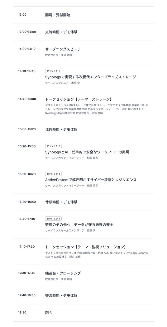 公式サイト :https://event.synology.com/ja-jp/synology-solution-day-2025/japan