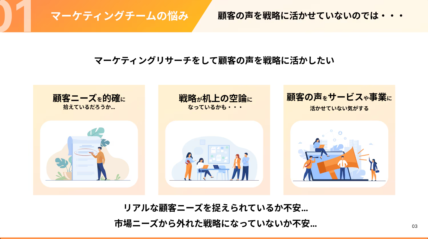 - 顧客の声を収集しても、表面的な情報にとどまり、ニーズが見えない