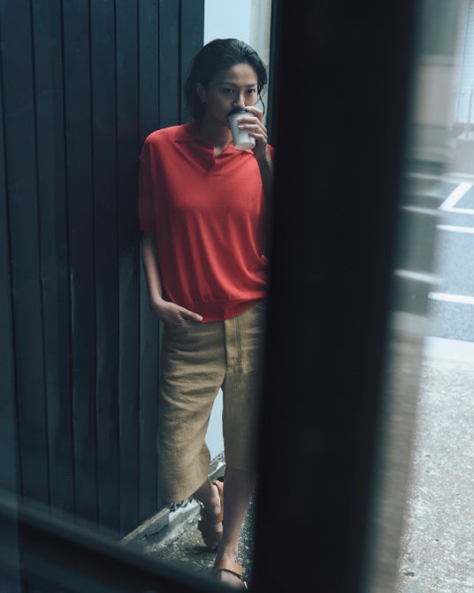 フォトグラファーには藤森誠治氏を起用。柔らかな日差しの中に漂うノンシャランな空気を切り取った日常の姿と、スタイリッシュなムードを纏った凛とした姿。どちらも同じ女性でありながら、その時々で表情が変わる。女性の持つ多面性に寄り添う服であることを、ビジュアルでも表現しました。