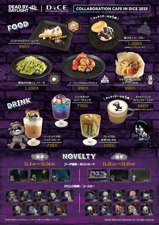 『Dead by Daylight』×DiCE コラボカフェ第4弾が11月3日(月)より開催決定!怖くて可愛いメニュー&グッズが盛りだくさん!謎解きにも挑戦して、フロントにある発電機を通電させよう!