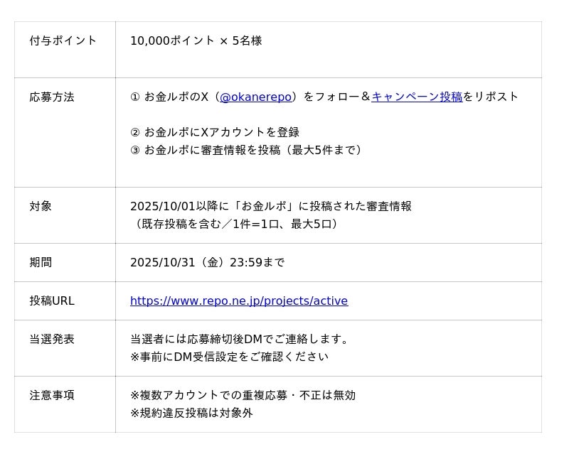 【お金ルポ】抽選で5名様に10,000円相当が当たるキャンペーンを開始
