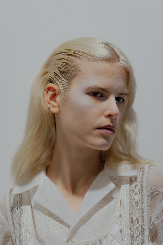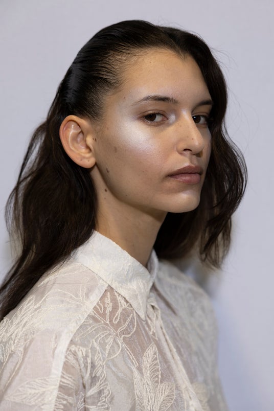 UJOHがコレクションで描いたしなやかで喜びに満ちた夏に呼応するように、肌をひんやりとした印象に見せる霜のような輝きの美しさをメイクアップで表現。