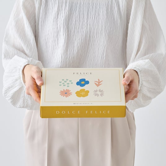 DOLCE FELICE(ドルチェフェリーチェ)は、KEYUCA1号店の本牧店に併設されたKEYUCA CAFEで、お客様が発した「KEYUCAで引き菓子を購入したい」という何気ない一言から始まったスイーツブランドです。DOLCE FELICEは、イタリア語で「しあわせなお菓子」の意味で、“一人でも多くのお客様に笑顔と幸せをお届けしたい”という想いを込め、商品を展開しています。