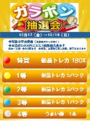 中古商品2,000円(税込)ご購入ごとに1回抽選(お一人さま1会計3回まで)に参加ができる「ガラポン抽選会」を実施いたします。特賞は新品トレカ1BOX、新品トレカ5パックなどをご用意しています。