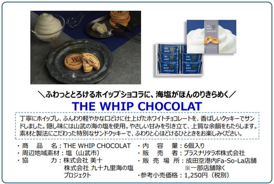 NAAグループでは、地域の魅力・資源と成田空港のシナジー効果の最大化を目指し、新たな地域振興に取り組んでおります。その取り組みの一環として、プラスナリタラボ株式会社は、山武市・九十九里浜の海の塩を隠し味に使用した「THE WHIP CHOCOLAT」を、2025年10月24日(金)から発売します。