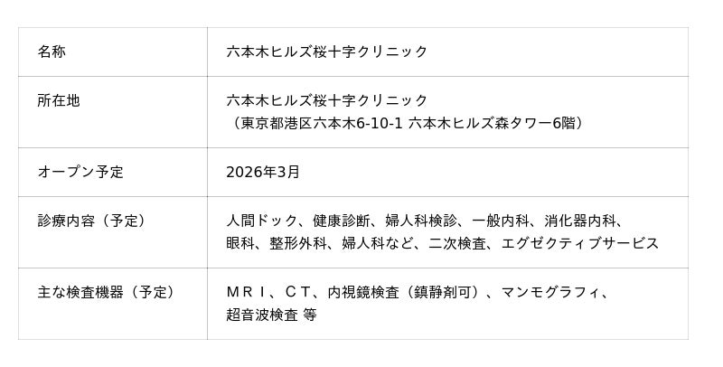医療・介護・予防医療を軸に「ウェルビーイング・フロンティア」を掲げる桜十字グループは、2026年3月、国際的なビジネスと文化の中心地である六本木ヒルズ森タワー6階に「六本木ヒルズ桜十字クリニック」を開院いたします。