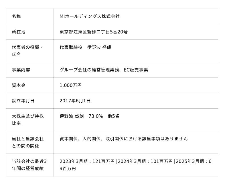 MIホールディングス株式会社の株式の取得(子会社化)に関するお知らせ
