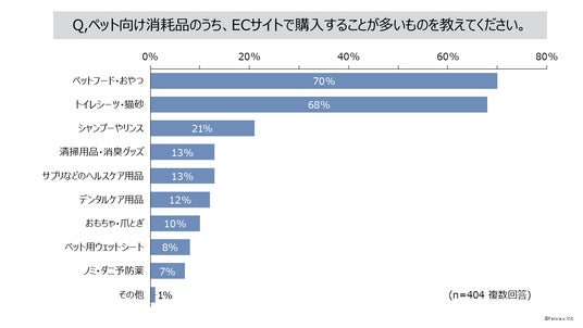 3.ECサイトで購入することが多いものは「ペットフード・おやつ」「トイレシーツ・猫砂」