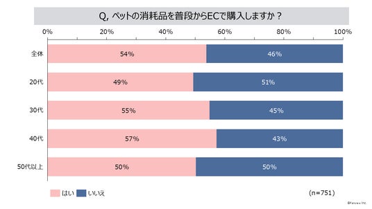 1. ペット向け消耗品の購入に普段からECサイトを利用する54%