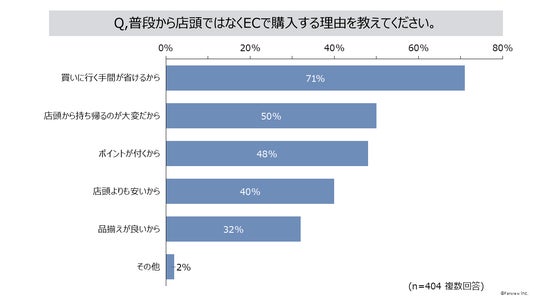 2.ペット向け消耗品を普段からECサイトで購入する理由は「買いに行く手間が省けるから」71%