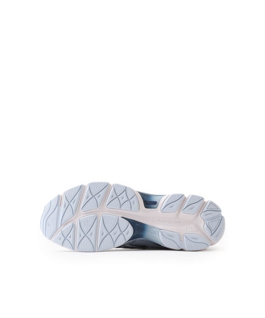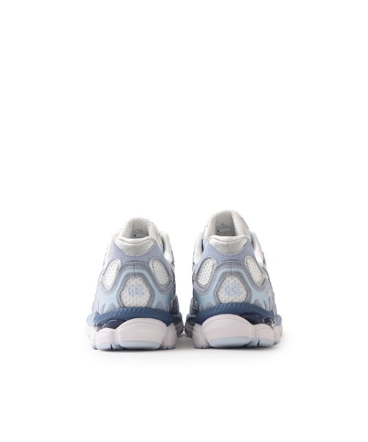 アッパーはホワイト、グレー、ブルーの配色に、ヒールとGEL部分は深いブルーとなっており、「氷山」を彷彿させるカラーウェイとなっています。また、インナーソールには海面に浮かぶ「氷山」もデザイン。