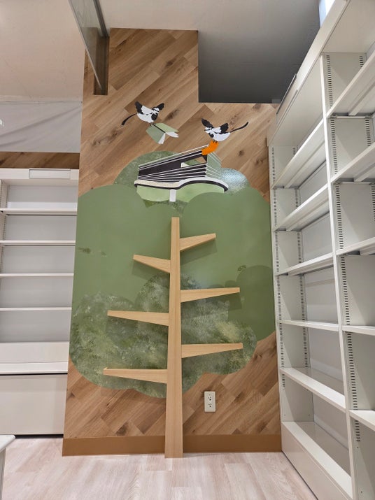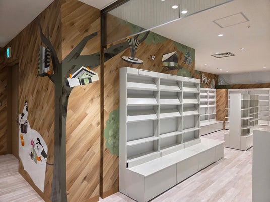 今回のリニューアルでは、学校法人女子美術大学と共同研究契約を締結し、店舗内装を共同開発。板橋区の鳥ハクセキレイが板橋区の街を巡り、最後は象徴的なランドマークである「いたばしボローニャ絵本館」に至るデザインを企画・制作しました。
