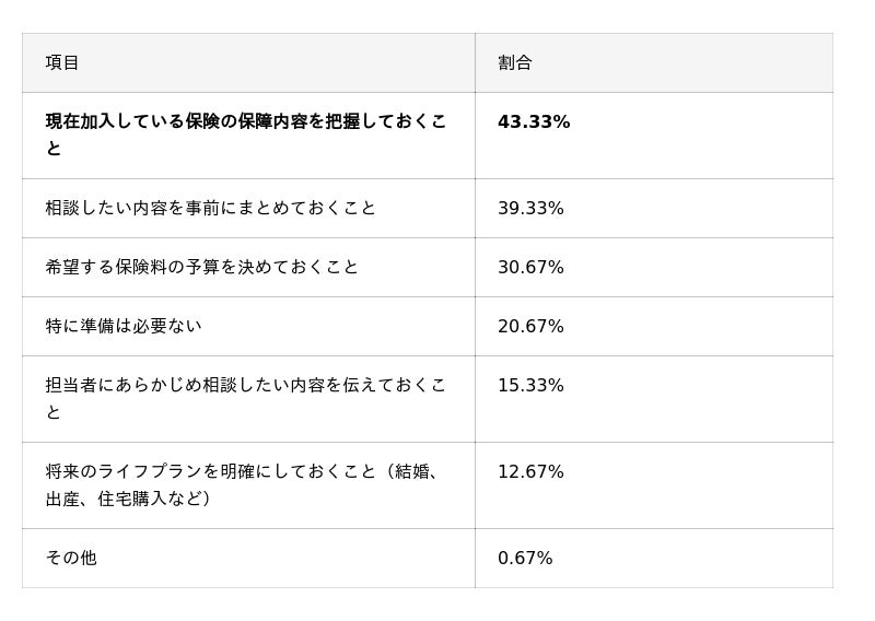 ■保険相談窓口に行く前にこれをしておけば良かった、またはしておいて良かったと思うことはありますか?