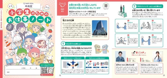 M&Aキャピタルパートナーズ株式会社(以下、「MACP」。東京都中央区・代表取締役社長 中村 悟) は、2025年10月に発行された文部科学省が推進するキャリア教育における副読本「発見 探検 中央区 小学生のためのお仕事ノート」2025年版を2023年度版、2024年度版につづき3年連続で協賛したことをお知らせします。誌面では、2ページにわたりMACPが掲載され、M&Aとその役割、社会的意義、M&Aアドバイザーの仕事内容などが小学生向けに分かりやすく解説されています。