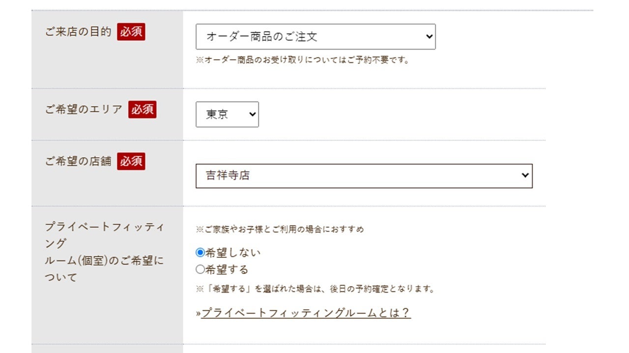 吉祥寺店では、人気の個室空間「プライベートフィッティングルーム(無料・要予約)」に加え、フリーWi-Fi・フリードリンク付きの「ウェイティング・カフェ」も併設しており、ご友人やご家族と一緒にご利用いただけます。