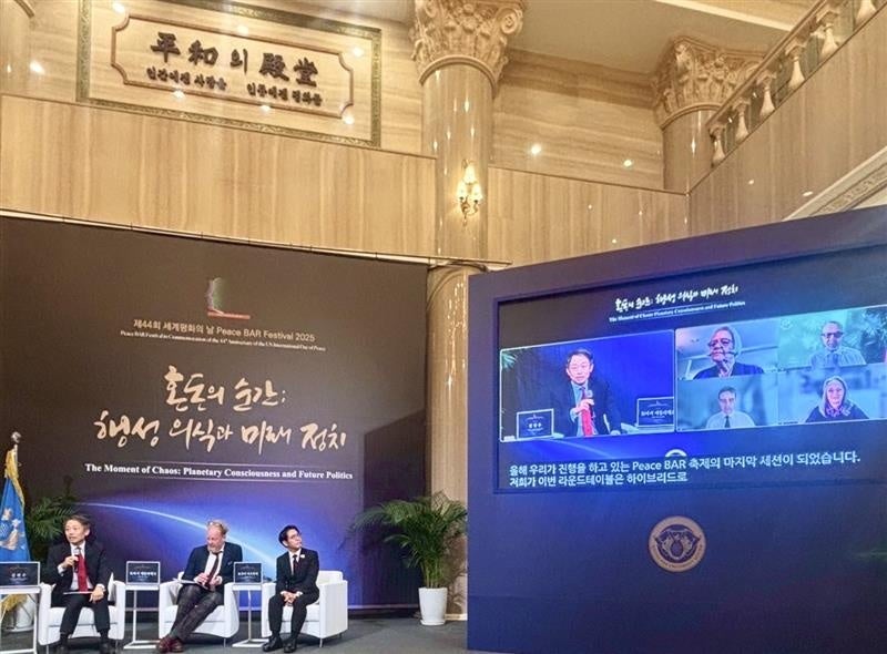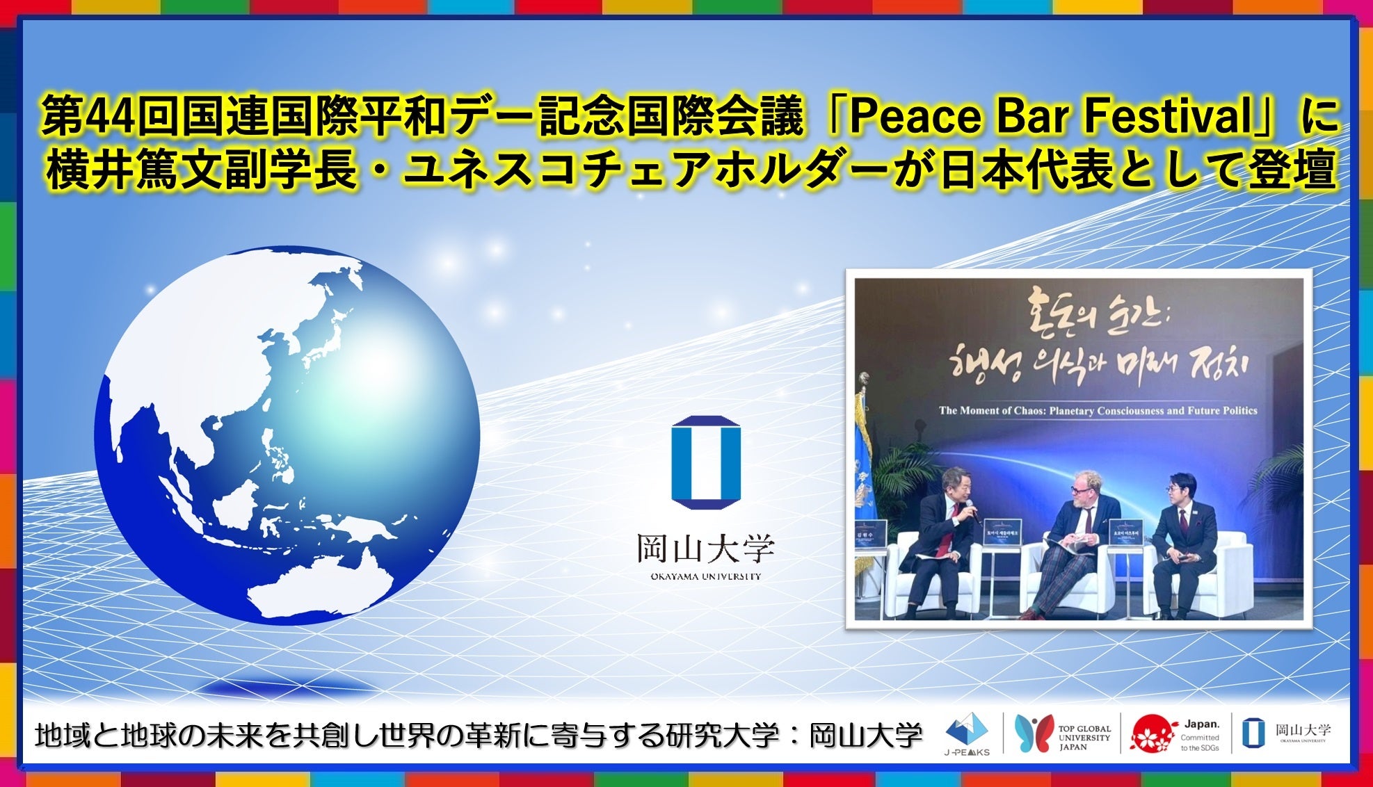 国立大学法人岡山大学(本部:岡山市北区、学長:那須保友)は、2025年9月19日、20日、第44回ピースバー・フェスティバル(PBF 2025)が、韓国ソウル市の慶熙大学(Kyung Hee University)にて「混乱の時代:地球意識と未来政治(The Moment of Chaos: Planetary Consciousness and Future Politics)」をテーマに開催され、本学の横井篤文副学長・ユネスコチェアホルダー(持続可能な開発のための研究と教育)が日本代表として登壇しました。