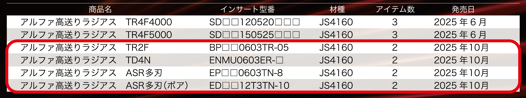 アルファ高送りラジアスミル ASR多刃タイプ用:4アイテム