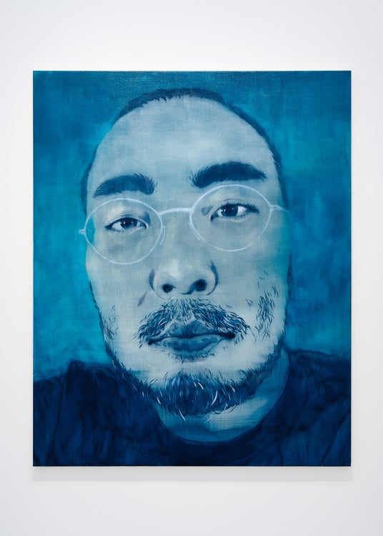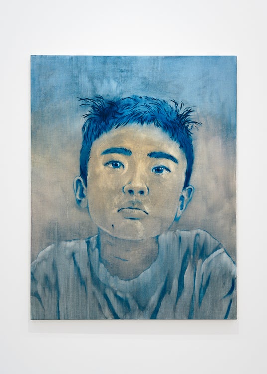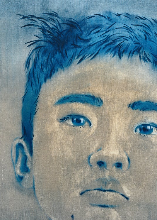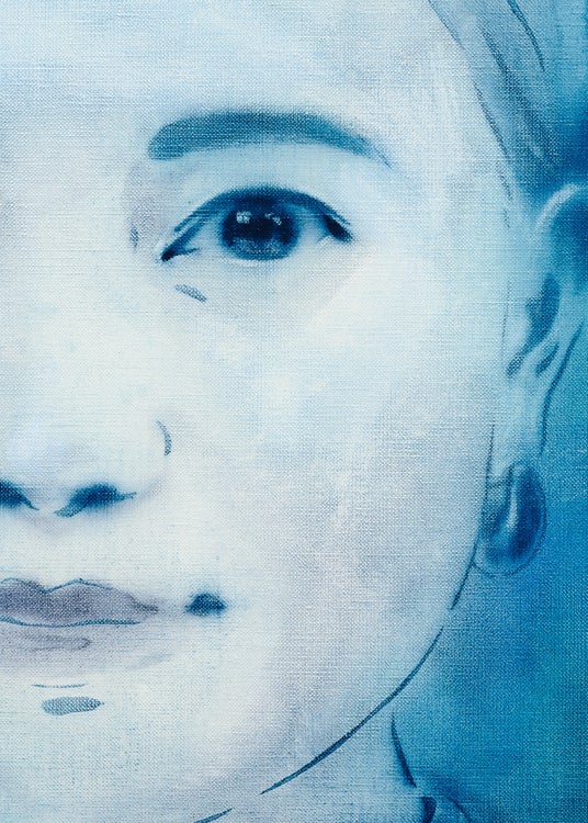 本作は、舘鼻則孝が自身のパートナーを描いた肖像画です。イメージのもとになっているのは、舘鼻本人が撮影した彼女の誕生日の写真です。青い色調が特徴的な本作は、パブロ・ピカソの「青の時代」を代表する20歳の自画像《Self-Portrait, 1901》を参照し構築されました。青い色調は、被写体の穏やかな表情を際立たせるとともに、作家自身の心情や過去の時間の記憶を映し出しています。