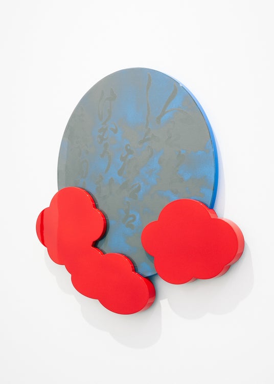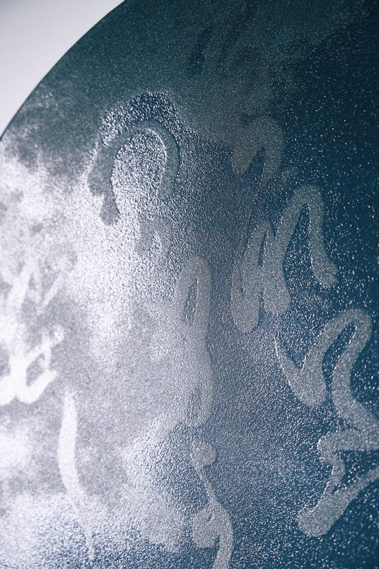 「Sacred Reflections」展では、文化の継承を主題に、「和歌」と「鏡」をモチーフとした作品を展開します。和歌は古来より、詠まれると同時に書写されることで継承されてきました。本展では、舘鼻自身が『古今和歌集』から選んだ和歌を自らの筆で書写し、その行為を通して日本語の美しさや精神性を表現するとともに、「受け継ぐ」という意味を作品に反映しています。さらに、作品の支持体のモチーフとなった「鏡」は、文化の記憶を映し出すと同時に、鑑賞者自身も作品を介して継承の一端を担うことを示唆しています。
