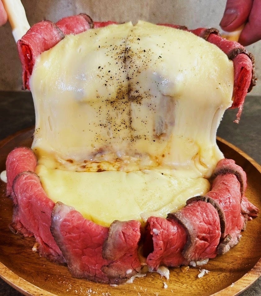 カットすると、チーズが溶岩のように流れ出し、歓声が沸き起こる。