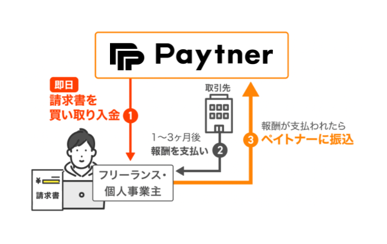 ペイトナーは、「挑戦できる、お金の仕組みをつくる。」をミッションに掲げ、最短即日で資金を受け取れる国内最大級のオンライン型ファクタリングサービス「ペイトナー」を提供しています。