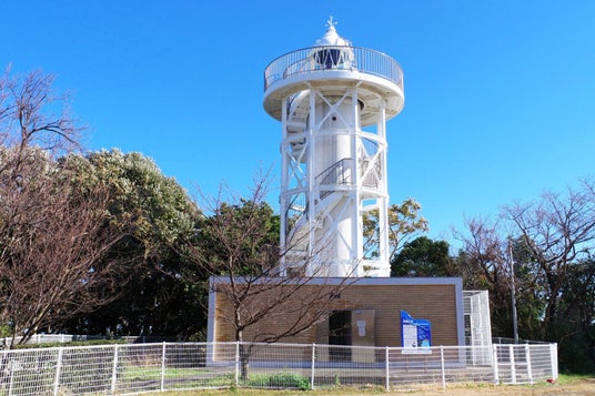 静岡県の最東端に位置する初島は、周囲4kmほどの小さな島です。国内有数の温泉地である熱海の発展と共に、初島もリゾート開発が進み、初島灯台は2007年に日本で15番目の「のぼれる灯台」となりました。その際、灯台本体の外側に螺旋階段が取り付けられました。島には昔ながらの飲食店と大規模なリゾート施設が混在し、毎年多くの観光客で賑わいます。