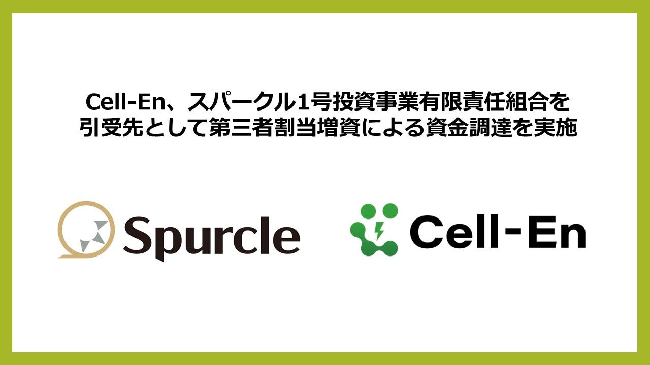 株式会社Cell-En(本社:東京都千代田区、代表取締役CEO:樋口貞春・代表取締役COO:山口直美、以下 Cell-En)は、この度、スパークル1号投資事業有限責任組合を引受先とした第三者割当増資、および補助金を合わせ、シードラウンドで1.5億円の資金調達を実施しました。