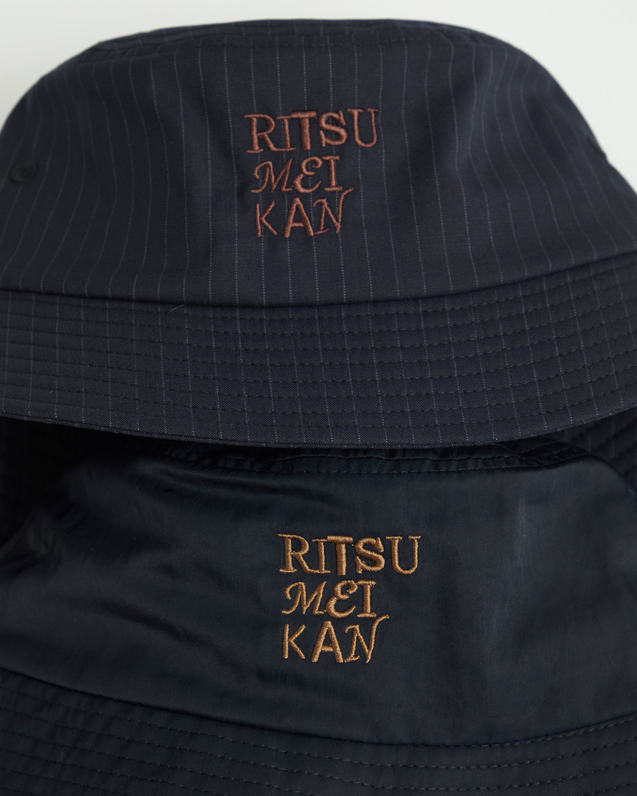 ストライブのハットは元々メンズスーツ用だった生地の残反から制作しました。柄をそのまま生かしてハットでは珍しいピンストライプに。きれいめで大人っぽい印象になるよう意識したデザインに仕上げました。
