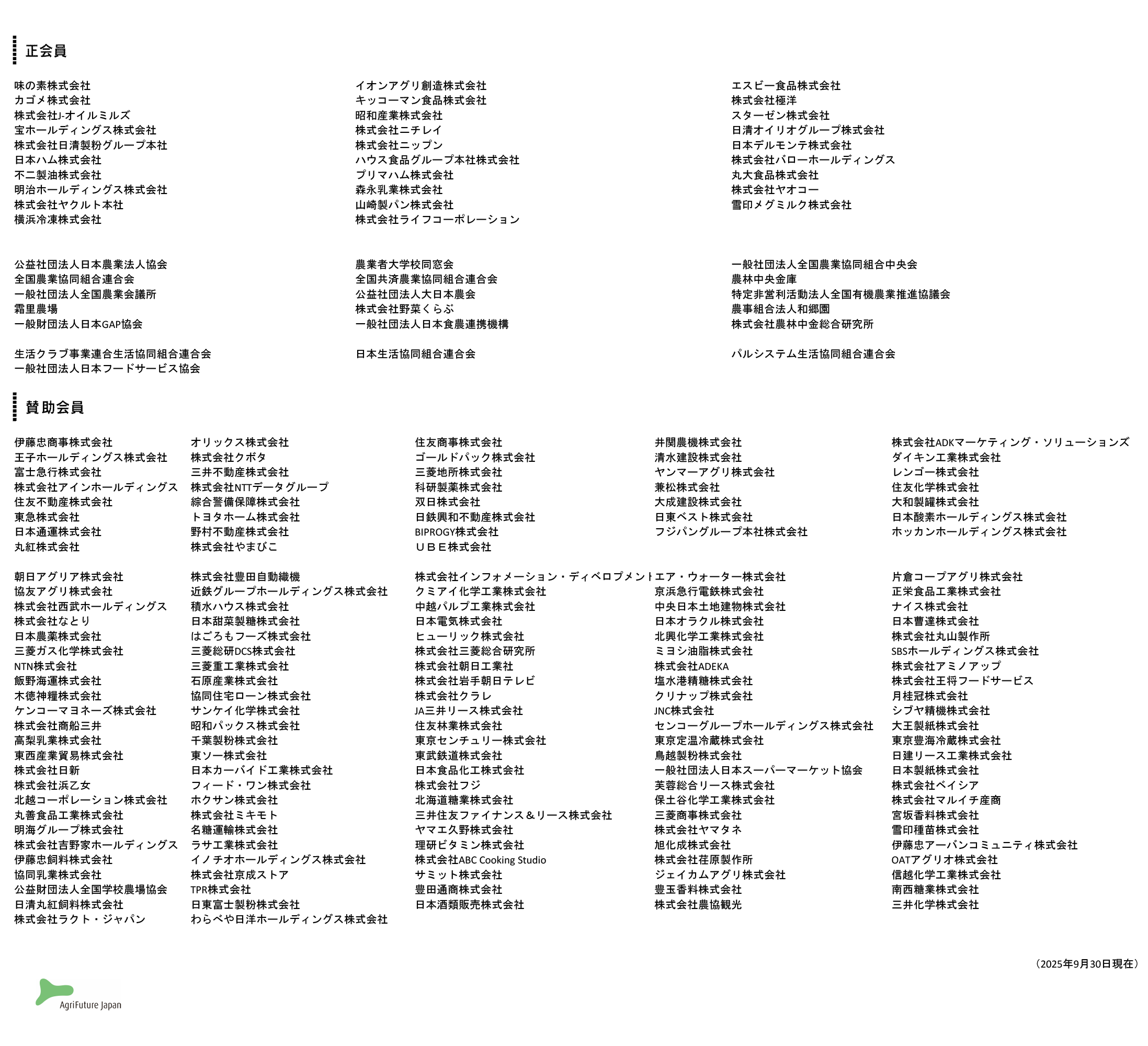 ■アグリフューチャージャパン会員一覧(2025年9月時点)