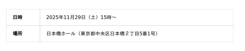日時:2025年11月29日(土)15時~17時