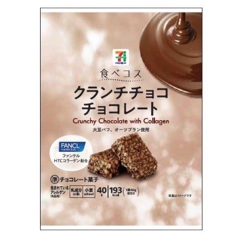 商品特長:ファンケルHTCコラーゲンを配合したクランチチョコ。大豆パフ、オーツブランを使用し美味しくたんぱく質と食物繊維を補給できます。