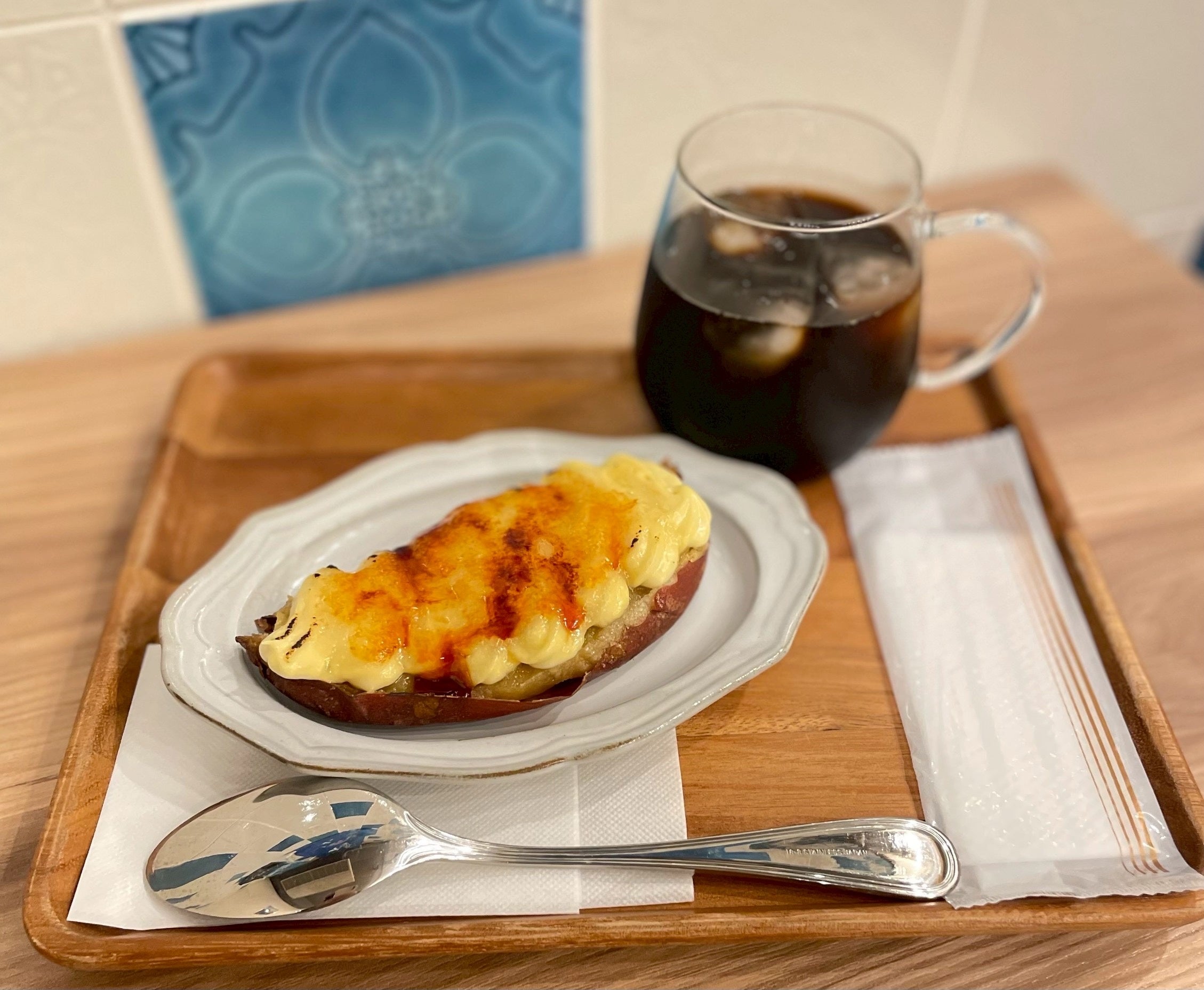 『芋モンブランブリュレ』ねっとり甘い紅はるかを半分にカットし、その上に濃厚な芋モンブランクリームをトッピング、仕上げに表面を香ばしくブリュレしました。さつま芋の自然な甘さと、モンブランの滑らかさ、そしてブリュレの香ばしさが三位一体となった贅沢スイーツです。