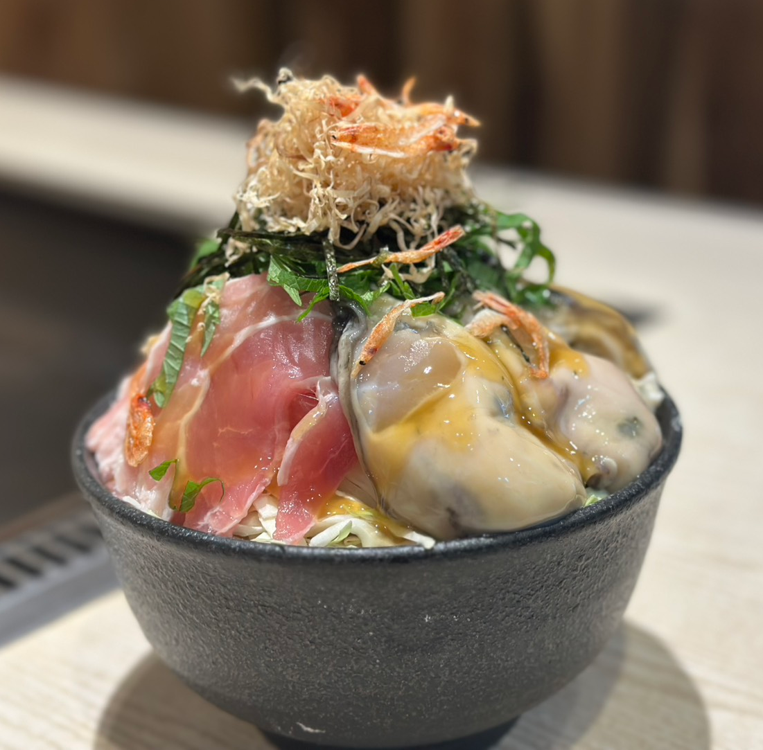 柚子胡椒香る、牡蠣と豚肉の旨味たっぷり和風もんじゃぷりぷりの牡蠣とジューシーな豚肉が織りなす、贅沢な旨味に、ピリッと爽やかな柚子胡椒のアクセント。香り高い青じそが全体を優しく包み込み、さっぱりとした後味に仕上げています。海と山の恵みが出会った、ちょっと大人の和風もんじゃ焼きです。