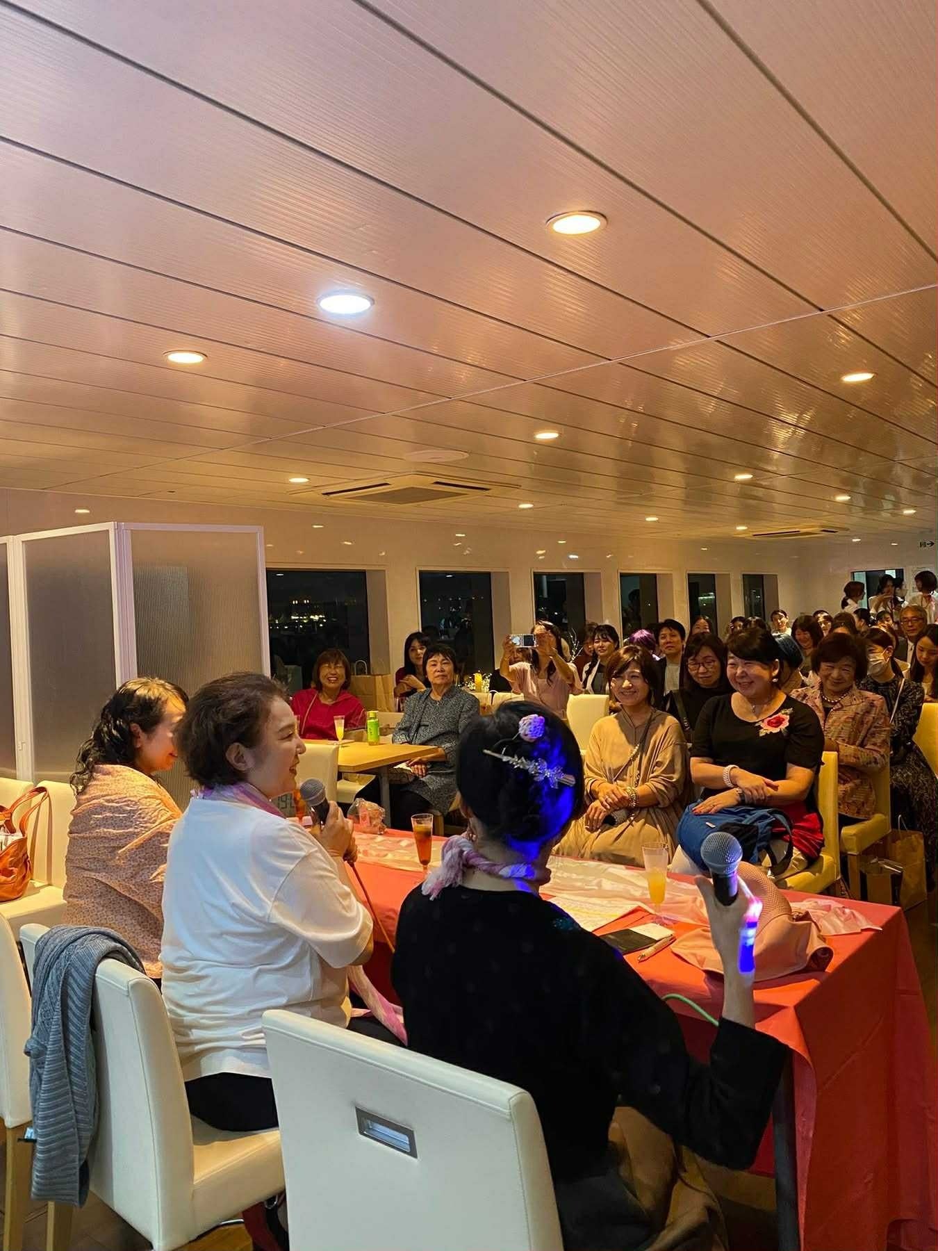 この特別企画として行われた「ピンクリボン ライトアップ フォトクルーズ2025」では、約100名の参加者が象の鼻桟橋から出航し、歌手で乳がんサバイバーの麻倉未稀さんによるトークショーや、専門家による夜景撮影レクチャー、ウクレレ演奏、ハンドセラピーなどが行われ、みなとみらいの夜景を巡りながら乳がん啓発への理解を深めました。