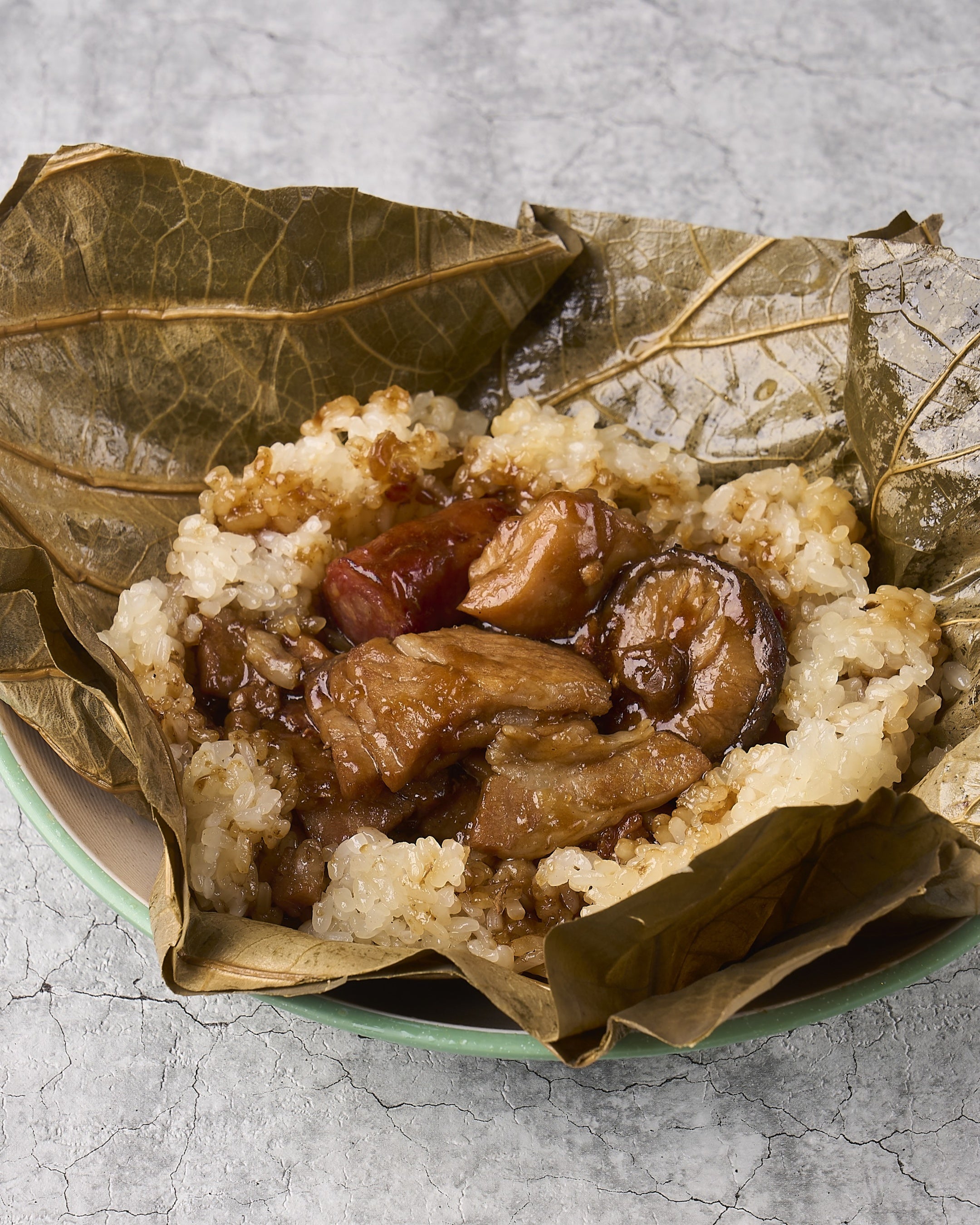 もち米と鶏肉、豚肉などを香り豊かな蓮の葉で蒸した、ボリュームも魅力の一品。
