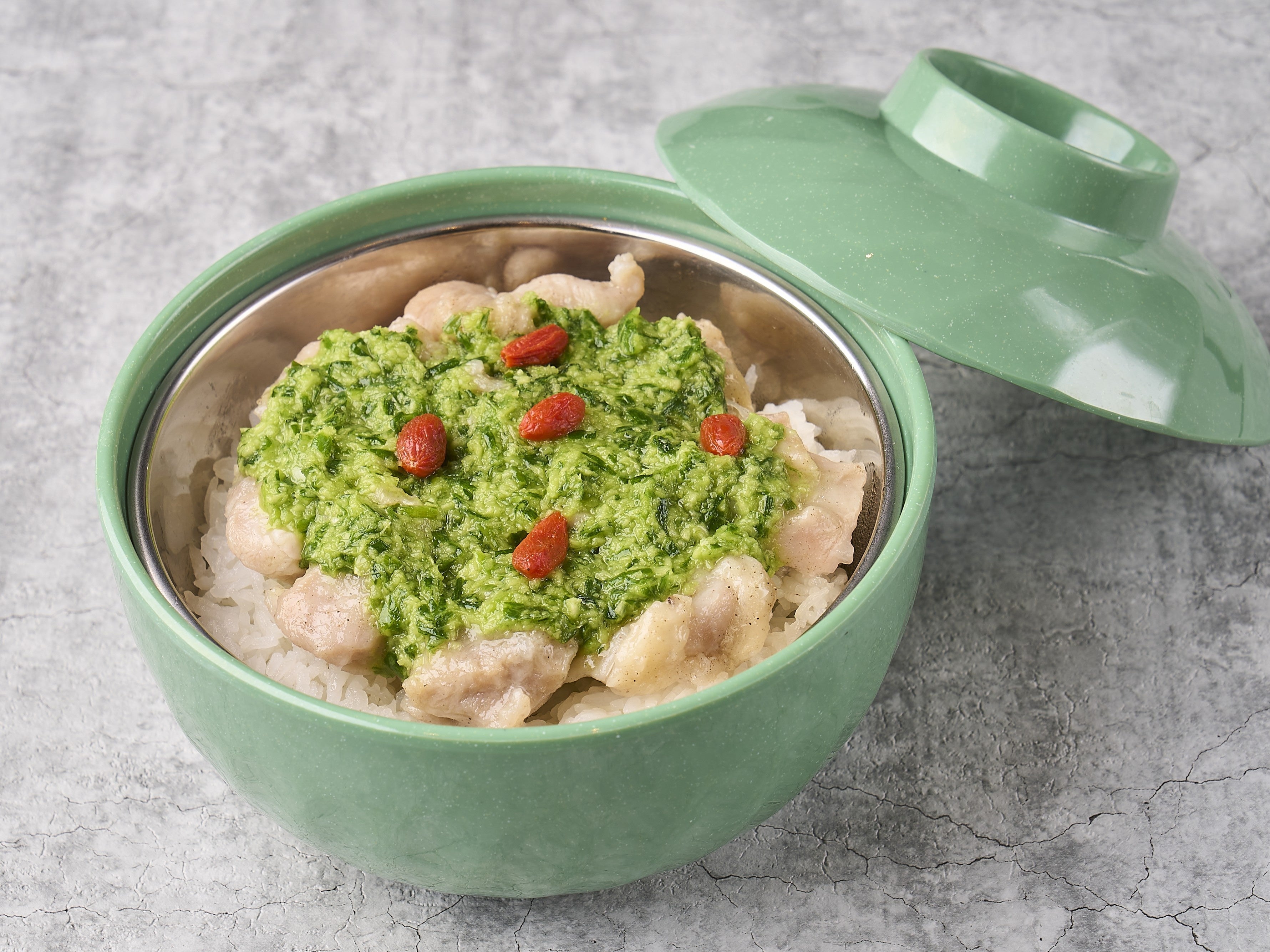 生姜と葱の鶏蒸しご飯 1,280円柔らかくジューシーに蒸した鶏肉に、生姜・ネギ・にんにく香る特製ソースをかけた香り立つご飯メニュー。