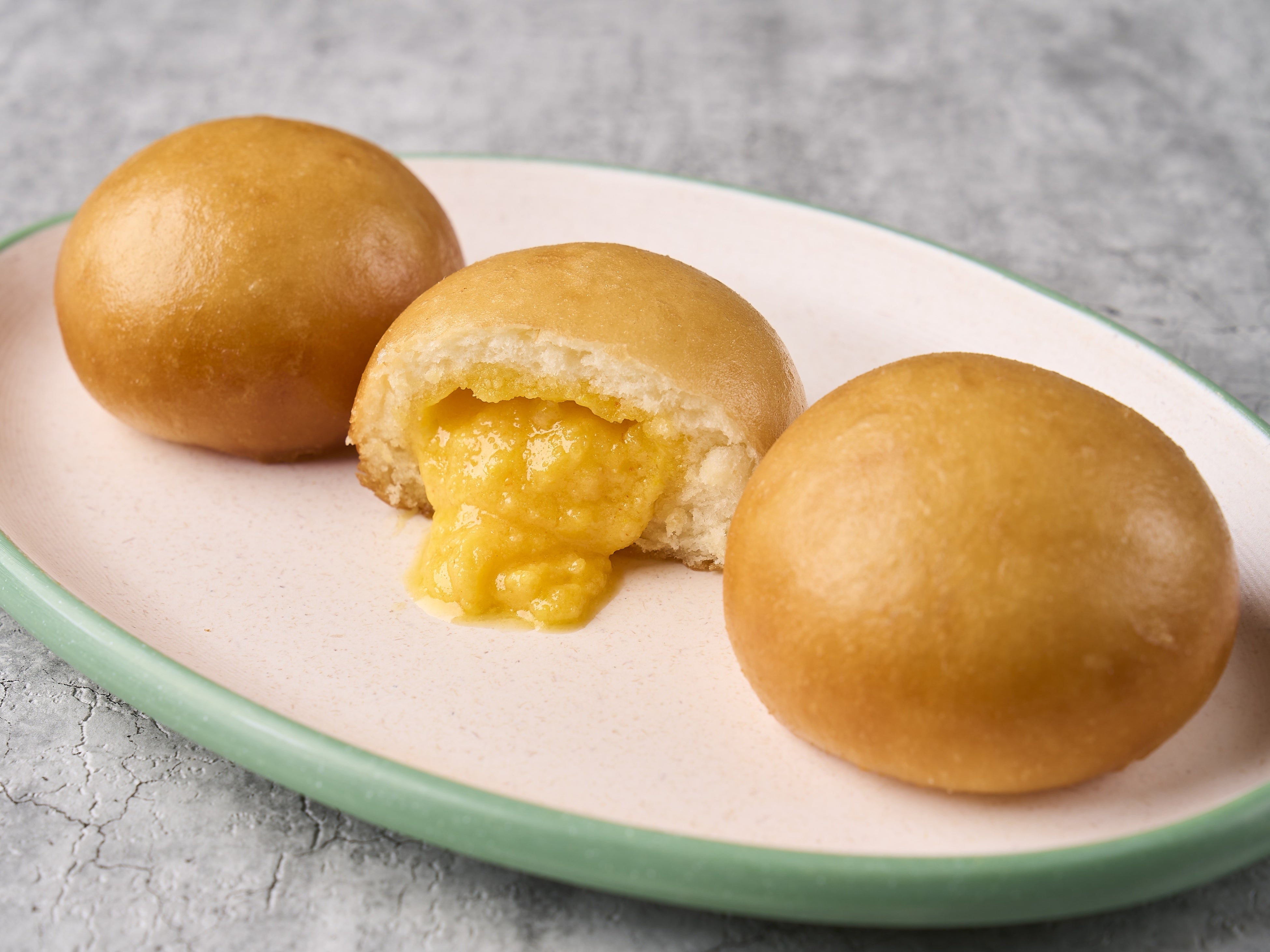 塩卵入りカスタード饅頭(蒸) 680円塩卵のコクをきかせた濃厚カスタードをもっちり皮で包んだ蒸し饅頭。
