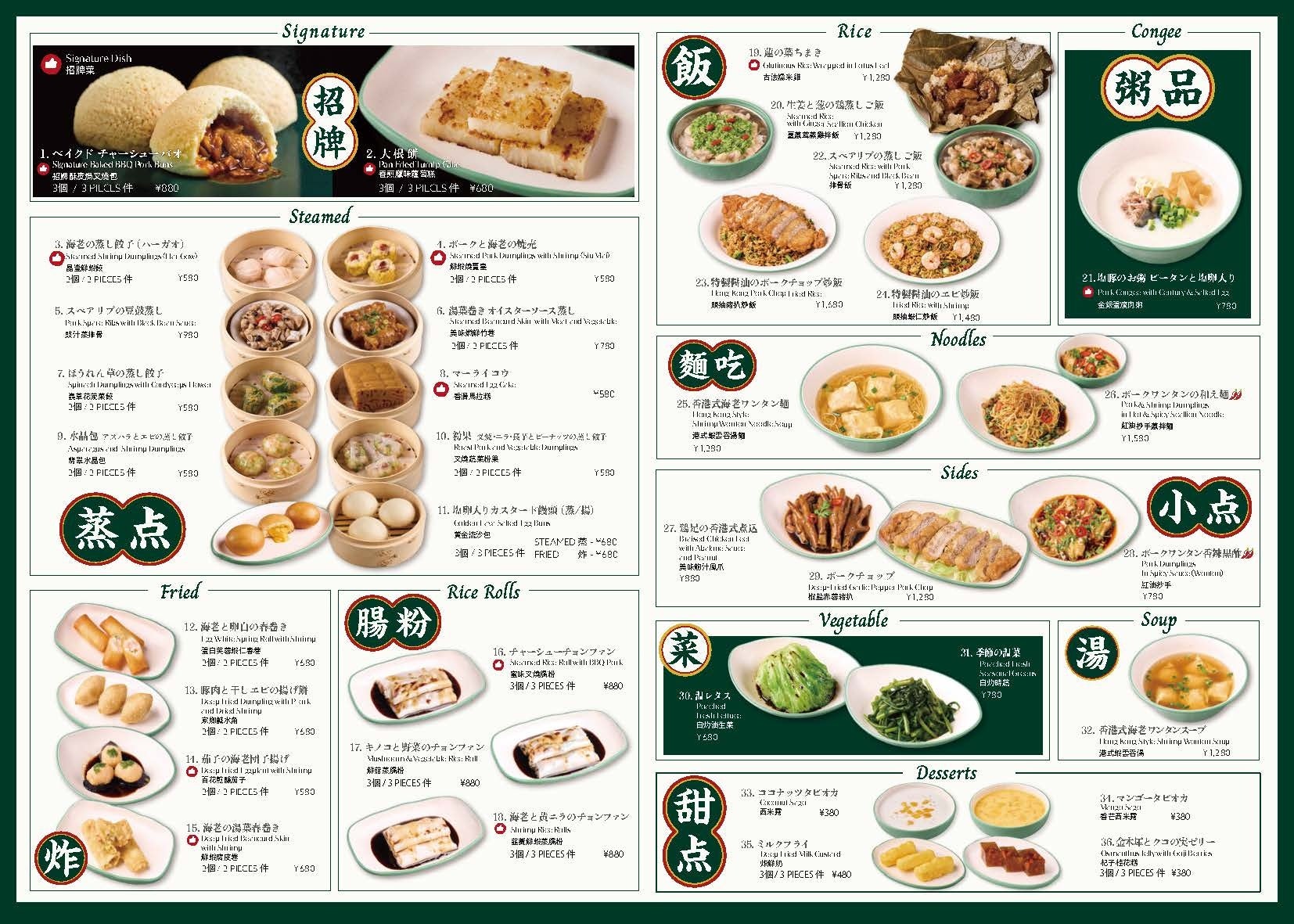 提供される点心は、全てMak氏とLeung氏のオリジナルレシピによるもので、一つ一つが各店の厨房で丁寧に手作りされます。メニューは、蒸物、揚物、米粉春巻き、粥、ちまき、野菜、デザートなどのカテゴリーで構成され、中でもチャーシューメロンパンとも呼ばれる看板メニュー「ベイクド チャーシューバオ」は、ほとんどのゲストが注文する必食メニューとなっています。