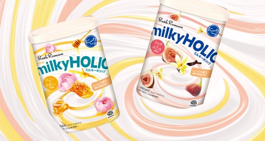『バスロマン ミルキーホリック』は花や果実を組み合わせた甘い香りと、ミルキーなお湯が楽しめる入浴剤です。製品名で使用している「ホリック=HOLIC」とは、「何かに熱中・依存・そのものが好き」という意味の言葉です。一度入ったら“やみつき”になってしまうような香りと湯ざわりで、トレンドに敏感で美容や香りに対して感度の高い 20~40代前半の女性も使いやすい、バスロマンとなっています。