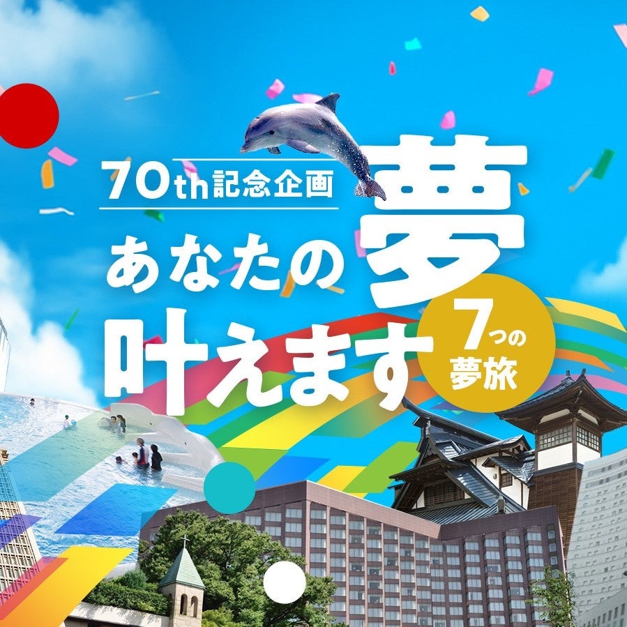 藤田観光株式会社(本社:東京 代表取締役兼社長執行役員:山下 信典)は、本年2025年11月7日(金)に会社設立70周年を迎えます。これまで支えてくださったお客さまや関係者の皆さまへ感謝の思いを込め、周年記念企画第1弾としてお客さまの夢を叶える「あなたの夢叶えます~7つの夢旅~」を開催しています。当社の日本国内施設にて、「叶えたい」「やってみたい」という皆さまの自由な“夢”をご応募いただき、その中から設立70周年にちなんだ“7つ”の夢を叶える企画です。