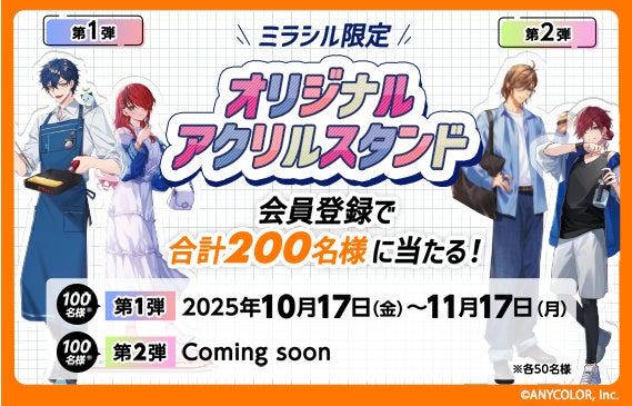 プロフェッショナル・エージェンシー事業を展開する株式会社クリーク・アンド・リバー社(以下C&R社)は、10月17日(金)からスタートした、暮らし情報メディア「ミラシル by 第一生命」(運営:第一生命保険株式会社)と、バーチャルライバーグループ「にじさんじ」所属ユニット「エデン組」とのコラボキャンペーンに協力いたします。本キャンペーンでは、「エデン組と、あたらしい毎日はじまる」 をキーワードに、「ミラシル」に会員登録(無料)をすることで、ここでしか楽しめない多彩なコンテンツや、オリジナルグッズが当たるプレゼント企画にご参加いただけます。