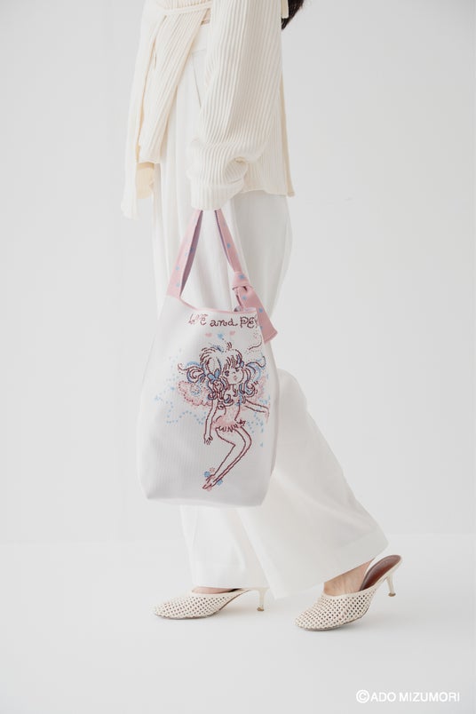 世代を超えて愛される水森亜土のポップでガーリーな魅力と、KNT365のアースフレンドリーな理念を融合させ、日常を華やかに彩る特別なバッグが誕生しました。