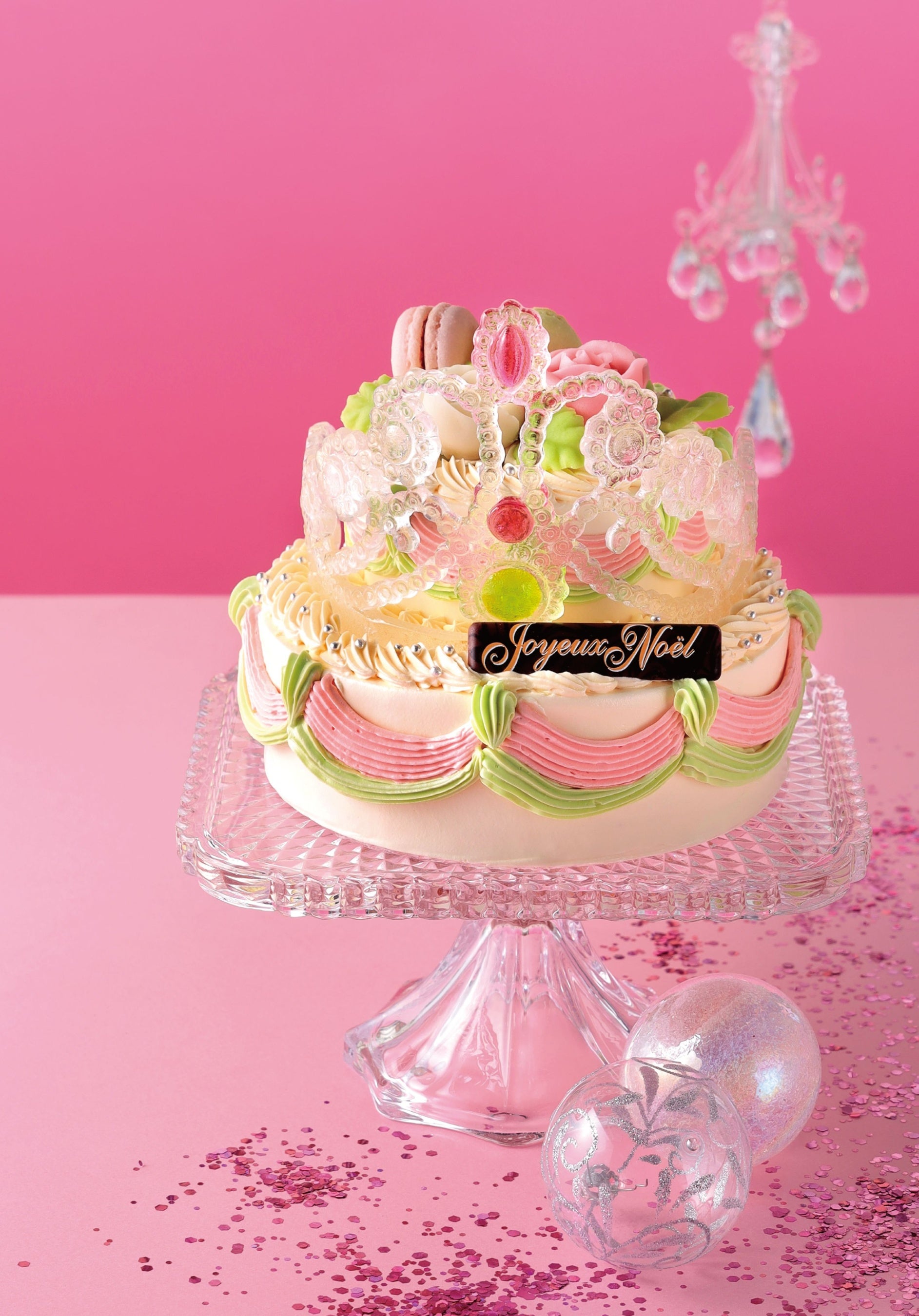 飴細工のティアラが輝く、華やかなスペシャルデコレーション。卵をたっぷり使用したしっとり食感のスポンジ生地に、香り高く濃厚なバタークリームとピンク色のクリームで包まれた高貴で優雅な雰囲気漂うケーキです。バタークリームはラム酒の有無が選べます。