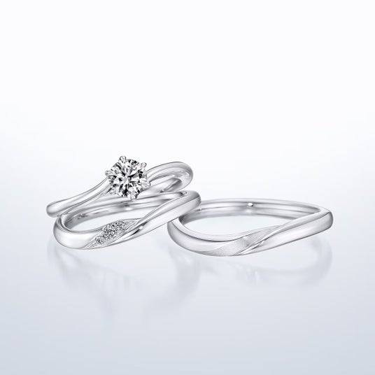 婚約指輪(エンゲージリング)と結婚指輪(マリッジリング)を重ねてつける「セットリング」も業界の先駆けとなっています。なめらかな着用感、サイドからみた美しさも細やかな手仕事がなすさらなる特徴です。
