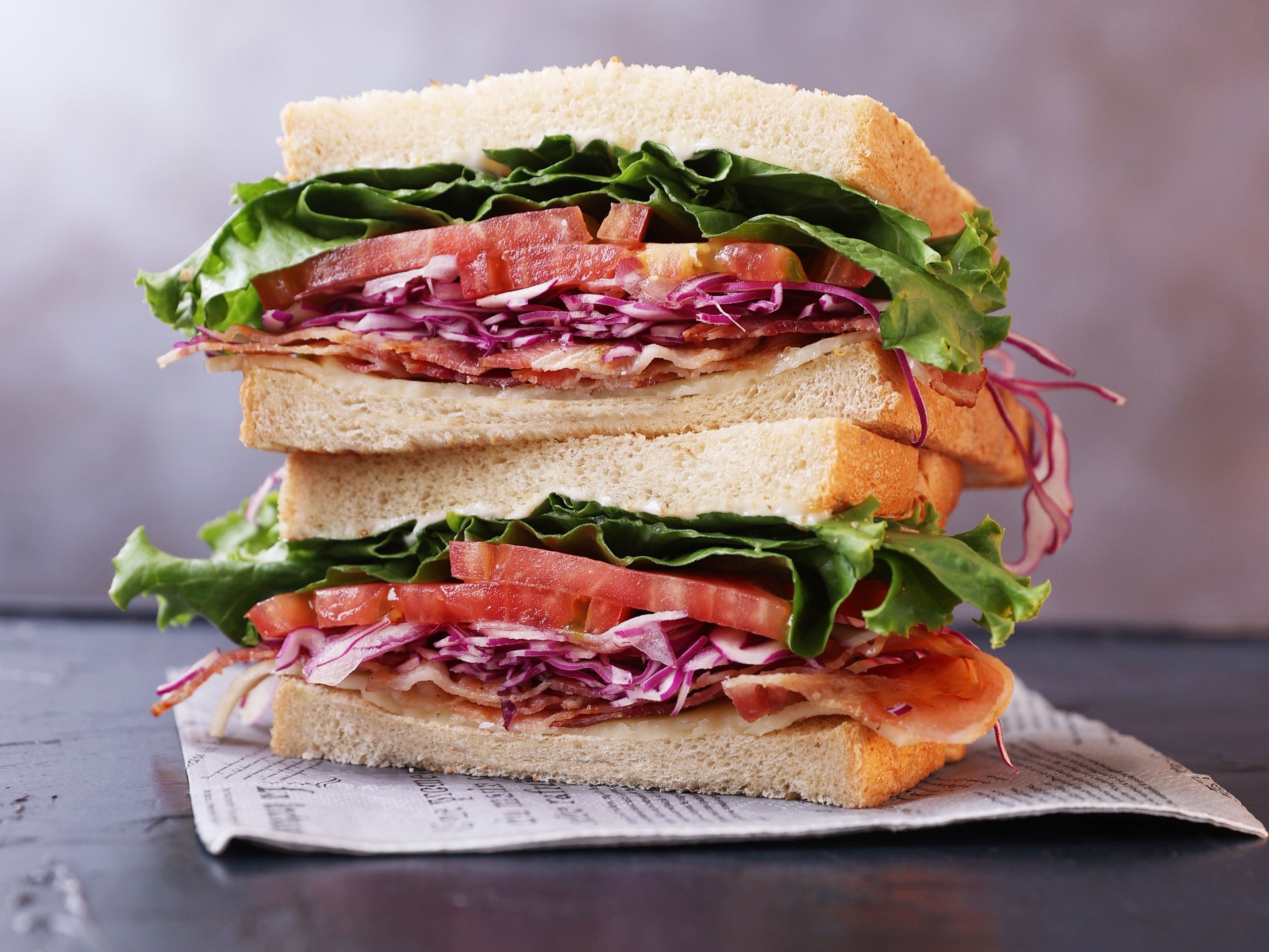 仕上げにシャキシャキのパープルキャベツ、爽やかなパープルオニオン、みずみずしいトマトとグリーンリーフをサンド。スモークの香りと野菜のフレッシュさが口の中いっぱいに広がる、見た目も華やかな贅沢サンドウィッチです。