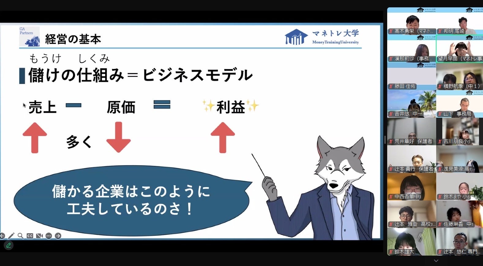 GA Partners株式会社は、”子どもへの教育は国への投資”を理念に、地域の皆様、教育機関の皆様にご協力していただき、全国の子どもたちへお金の知識を届ける「マネトレキッズ」を展開しております。これまで「マネトレ大学」に入学された大人から、小さいうちから金融教育を。と望む声が多く