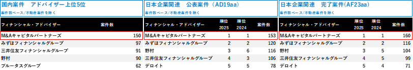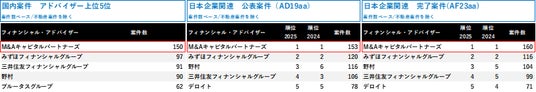 ・1位獲得「国内案件 アドバイザー上位5位 案件数ベース」