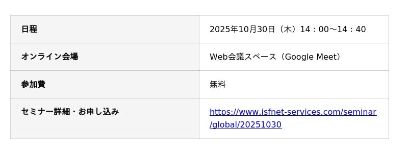 セミナーお申し込みはこちら:https://www.isfnet-services.com/seminar/global/20251030