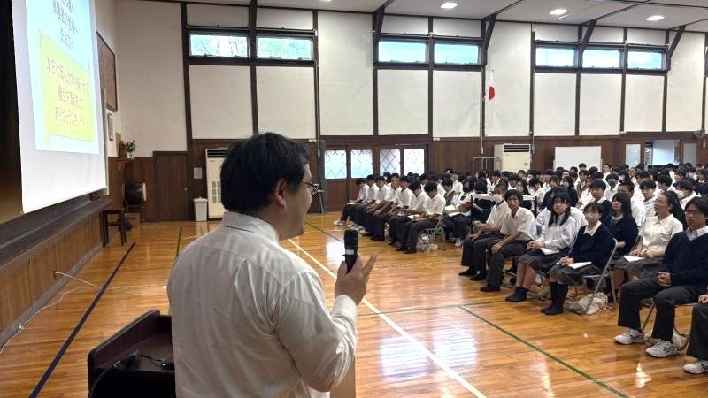国立大学法人岡山大学(本部:岡山市北区、学長:那須保友)は、2025年10月3日、岡山学芸館高等学校にて、高校1年生と保護者を対象とした岡山大学工学部の説明会を実施しました。当日は、300人を超える生徒・教職員と保護者が参加しました。本説明会は、文系・理系の選択を控える高校1年生とその保護者に向け、理系学部の実際の学びを伝え、より広い進路選択の一助とすることを目的に開催したものです。