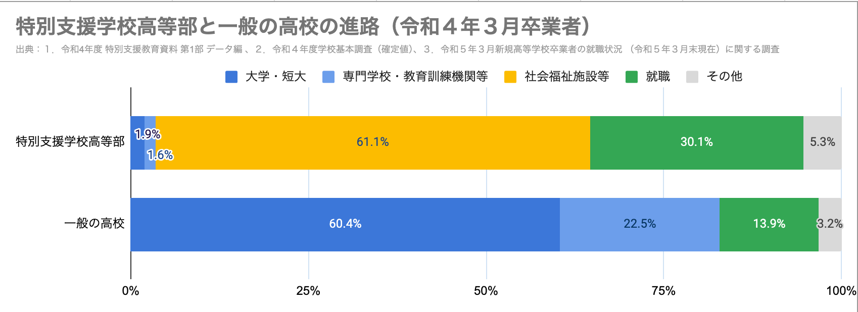 令和4年度 特別支援教育資料 第1部 データ編 2./令和4年度学校基本調査(確定値)/令和5年3月新規高等学校卒業者の就職状況 (令和5年3月末現在)に関する調査について を参照に作成